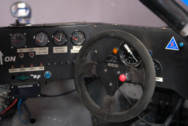 The lightweight front and rear body panels are easily removed revealing hallmarks of chassis and suspension excellence, marking some of the most advanced technology available in the early 1980s. With the rear section removed, the powerful dry-sump, all-alloy 350 V8 engine can be easily serviced and reviewed without troublesome and time-consuming trackside machinations. The 5 main bearing tuffride-hardened forged 1053 steel crank and balanced rotating assembly are fed by multiport fuel-injection exiting combustion through four-in-one tubular headers. A 5-speed manual gearbox, double wishbone, coil-over suspension, rack and pinion steering, and ventilated disk brakes with multi-piston calipers at all four corners complete the impressive chassis features.